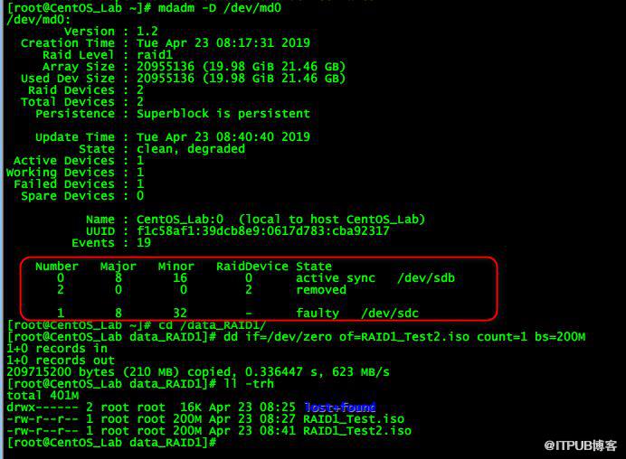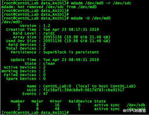 [root@CentOS_Lab ~]# mdadm /dev/md0 -f /dev/sdc