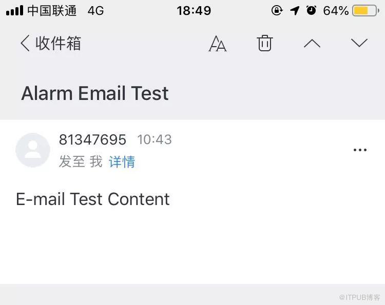 5、验证自己126邮箱是否收到测试邮件,可以看到已经收到测试邮件