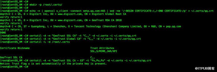 [root@localhost ~]# certutil -A -n "GeoTrust Global CA" -t "C,," -d ~/.certs -i ~/.certs/qq.crt