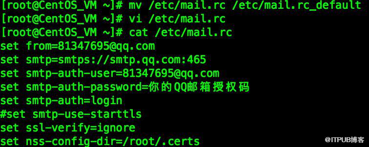 2、vi编辑mail的配置文件/etc/mail.rc
