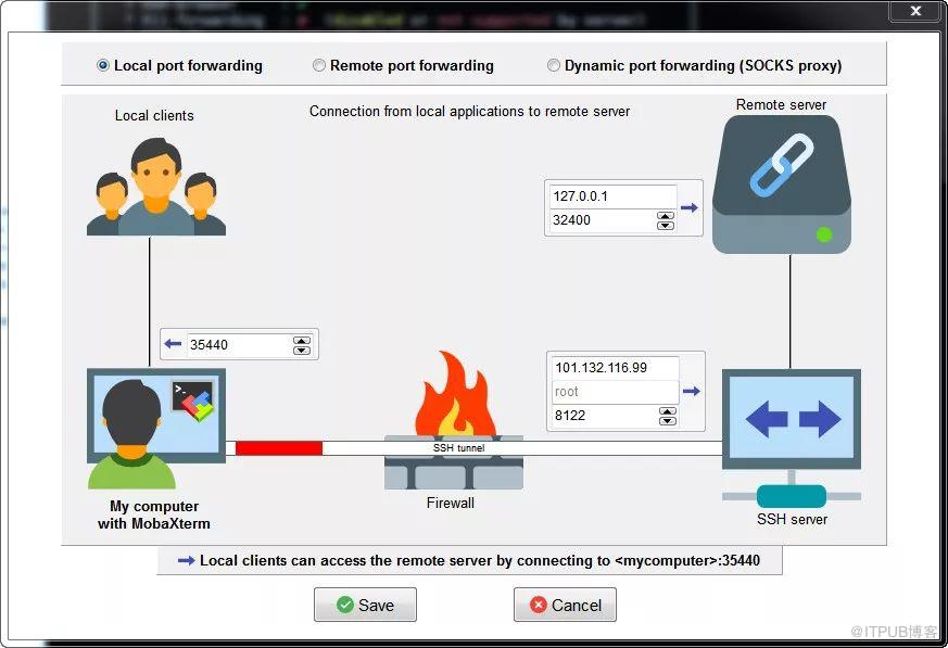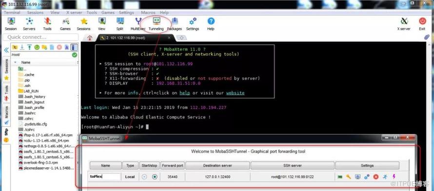 使用MobaXterm登录ECS服务器,设置本地端口转发,例如将32400端口转发到本址35440端口