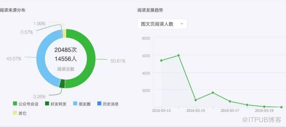 单篇图文的数据分析详情页有 5 个关键指标:送达、公众号会话阅读、从公众号分享到朋友圈/社群、在朋友圈/社群再次分享、在朋友圈阅读。这5个关键指标,可以构成一个标准的转化漏斗模型,很直观可以通过数据展现出一篇文章的传播途径。