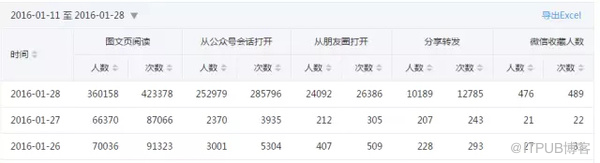 也可以选择相应的公众号数据下载时间,下载好的表格会自动用Excel软件打开,进行相应的数据分析即可。