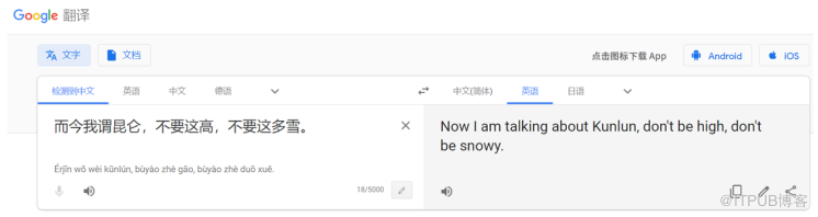 再说一个更为典型一些的,譬如我们常用的谷歌翻译、百度翻译。输入某一种语言,再选择目标语言,像示例这样的短句就可以瞬间得到翻译结果。目前的应用中,像汉语、英语、日语、法语等相对主流的语言之间的翻译已经相当成熟了。只要不要故意用极端的例子考验它,它都能够输出正确结果的,虽然措辞可能不够优美。