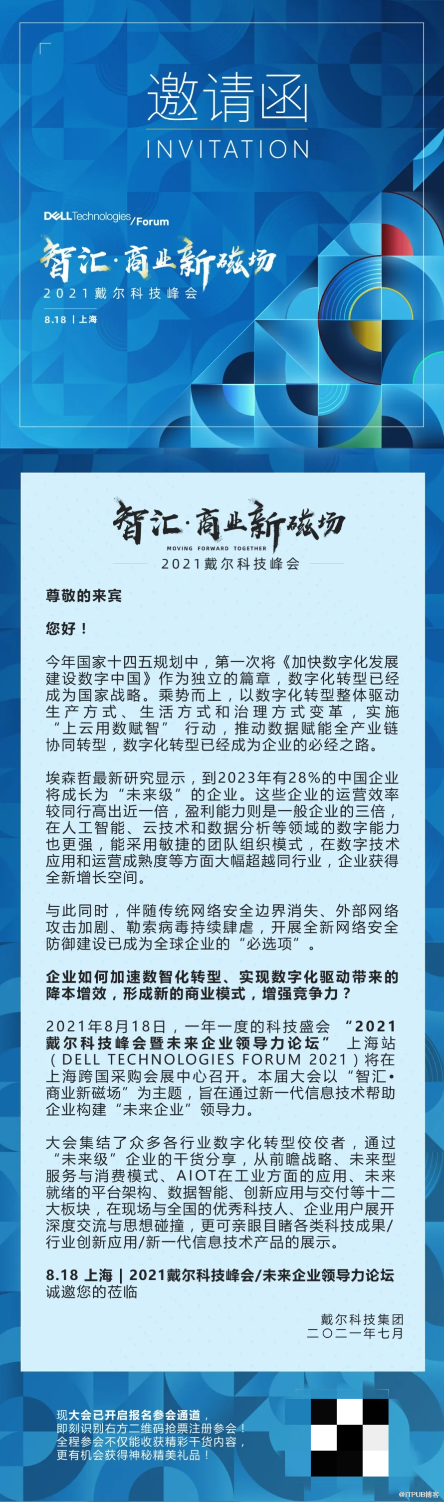 8.18 上海 | 2021戴尔科技峰会/未来企业领导力论坛 诚邀您的莅临