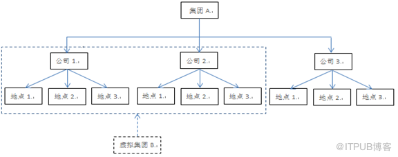 2) 可灵活自定义集团的多个分析维度,如将公司1与公司2再建成一个虚拟的集团B: