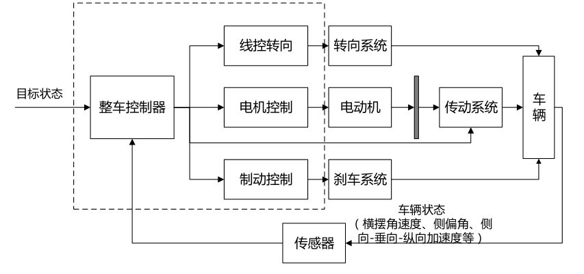 纵向控制,即车辆的驱动与制动控制,是指通过对油门和制动的协调,实现对期望车速的精确跟随。横向控制,即通过方向盘角度的调整以及轮胎力的控制,实现自动驾驶汽车的路径跟踪。