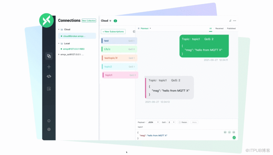 MQTT X 是一款开源的跨平台桌面客户端,它简单易用且提供全面的 MQTT 5.0 功能、特性测试,可运行在macOS, Linux 和 Windows 上。同时,它还提供了命令行及浏览器版本,满足不同场景下的 MQTT 测试需求。感兴趣的读者可访问 MQTT X 官网进行下载试用: