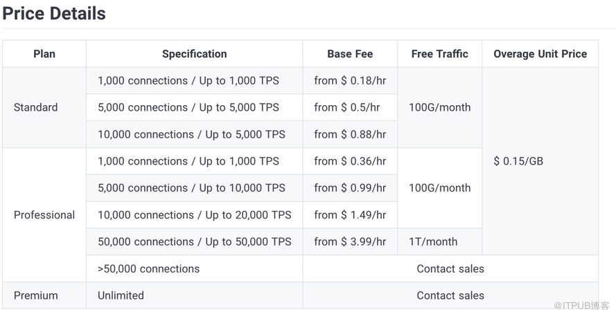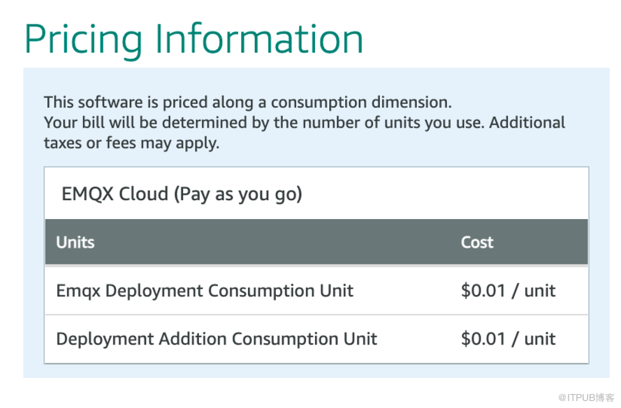 最终消费账单和您直接使用 EMQX Cloud 按小时计费的价格一致,具体可参考 EMQX Cloud Pring Details。