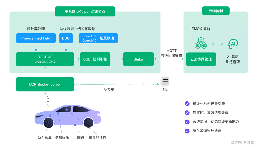 eKuiper 作为一个通用的流式计算引擎,除了实现数据采集之外,还可以实现很多边缘计算功能,充分利用车载终端算力。例如,eKuiper 可支持下列功能: