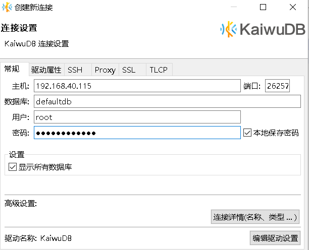 kaiwudb_port:KaiwuDB 服务端口,默认为26257。 -