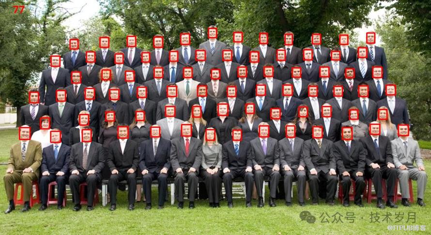当然人脸检测也可以检出多个人脸,目前常见的活动现场照片找人,集体照标记,出席签到,现场人数统计等场景都是基于该技术。