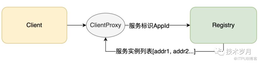 客户端通过 client_proxy 接入服务发现,首先要在初始化时增加服务端的标识(appId),通过服务注册中心获取该标识对应的实例列表。