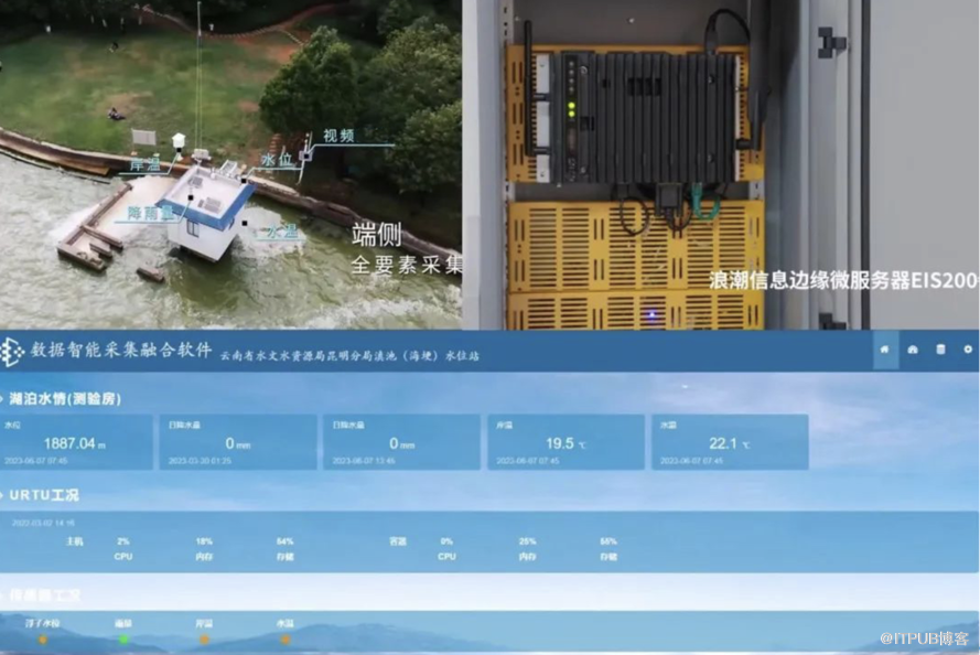 为进一步保护滇池流域生态环境,2022 年,在云南水文水资源局昆明分局的指导下,浪潮信息携手合作伙伴东华软件,利用云计算、边缘计算、AI 、大数据等技术,部署建成了智慧水文站试点项目,建立起滇池水资源智能监测预警系统,实现滇池流域水文信息的全要素、全量程、全时段自动感知监测,不仅能够有效预防水污染、洪涝、干旱等各类生态环境灾害,更具意义的是,可通过滇池水域信息变化的长期追踪,帮助科研人员更好的研究滇池生态环境变化,对未来滇池流域生态保护,生态系统修复具有深远影响。