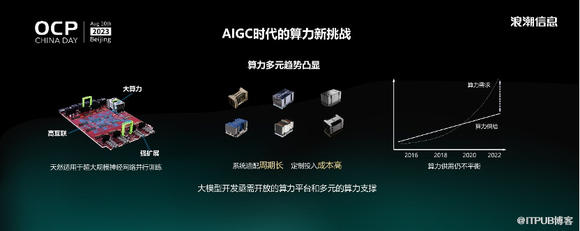 但是,在OAM产业落地过程中,很多厂商所开发的加速卡依然存在硬件接口不统一、互连协议不统一,同时软件生态互不兼容,带来了新型AI加速卡系统适配周期长、定制投入成本高的落地难题,导致算力供给和算力需求之间的剪刀差不断加大,行业亟需更加开放的算力平台,以及更加多元的算力支撑大模型的训练。