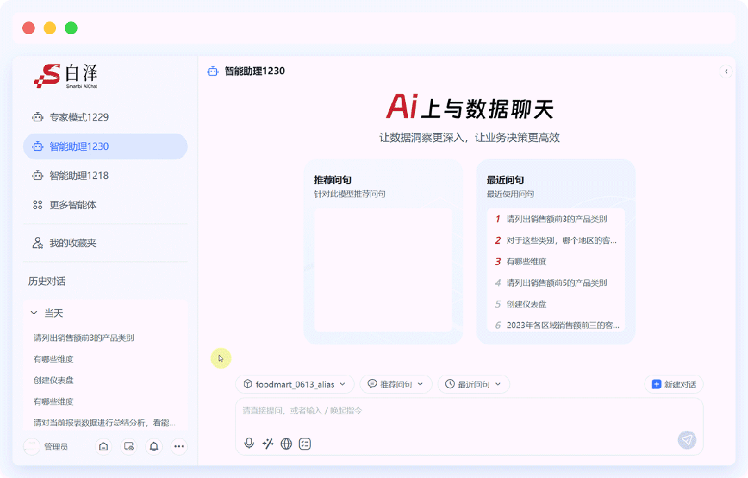 新年伊始,万象更新。Smartbi产品团队持续聚焦用户体验与个性化需求,带来2026年1月重磅更新!今年的第一次更新,重点围绕“交互自然感”和“协作精细度”两大方向。白泽与ABI平台双线更新,推出一系列新功能,进一步优化对话与数据分析体验,助力企业更智能、更高效地挖掘数据价值。