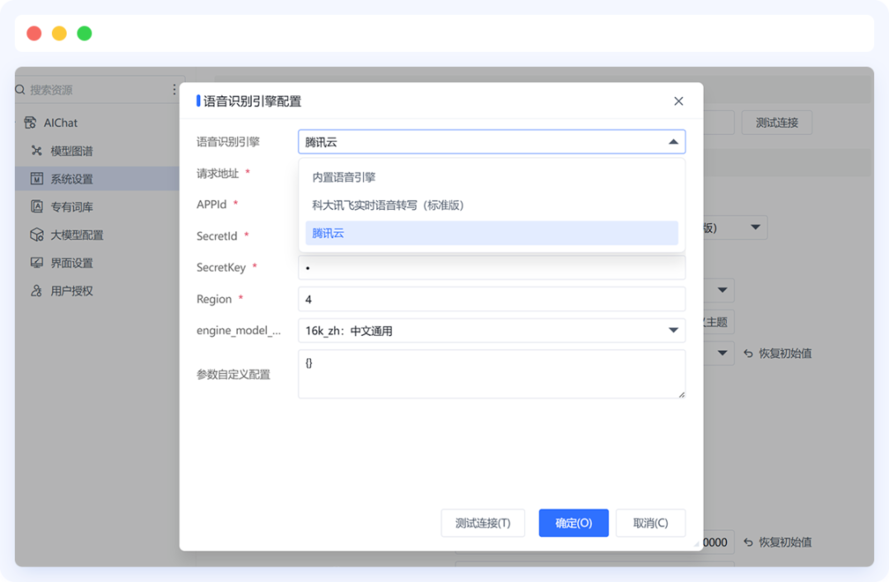 为满足不同业务场景下方言、专业术语的语音识别需求,新版本支持语音配置功能,接入科大讯飞、腾讯云等多款主流语音引擎,并可在配置中调整语言类型、方言及行业热词,提升语音交互的准确性与适用性,充分适配各类用户的差异化语音应用场景。