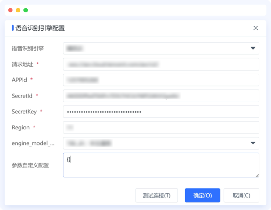 当用户需要自定义语音引擎时,可通过新增设的「语音识别引擎」二级配置入口,在可视化界面中自由选择科大讯飞、腾讯云等主流语音引擎,选定语音引擎后,支持按需调整语言类型、方言、行业热词等参数,可有效解决语音沟通障碍、专业术语识别不精准等问题。