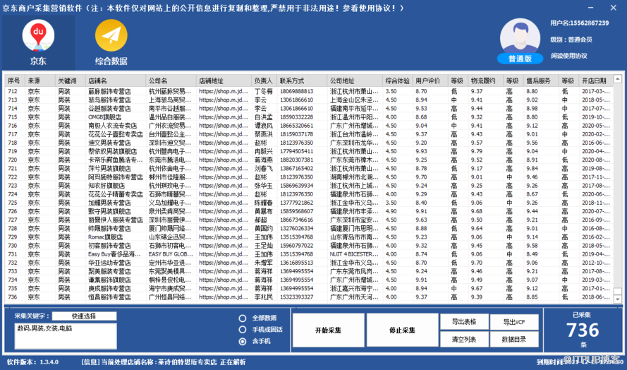 京东商家电话采集软件,脱胎于Python一源许久,称为市面上非常受欢迎的工具软件。
