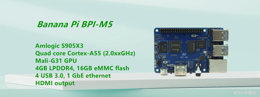 Banana Pi BPI-M5是新一代单板计算机设计,采用Amlogic S905X3四核Cortex-A55 (2.0xxGHz)处理器。Mali-G31 MP2 GPU。支持4GB LPDDR4和16G eMMC 存储。它有4个USB 3.0端口,1GbE LAN端口。
