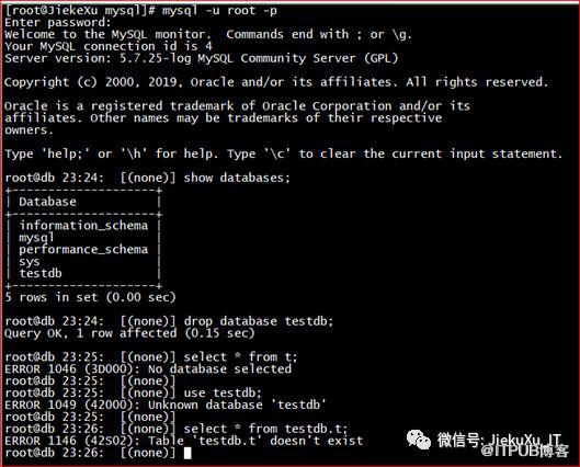 假设有运维人员不小心将数据库 testdb 删除,那么数据库中的表也将不复存在。