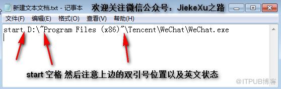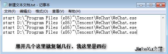 如果你的微信地址和我一样,直接复制粘贴,不怕搞错。如果你的微信在其他盘符下,则需将如上的 start 空格后面的大写字母 D 换成其他盘符如:C。