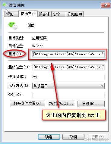 在电脑桌面找到微信,右键 - 属性,复制「目标」栏里的地址