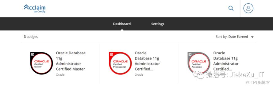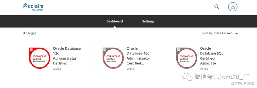 登陆之后便可以看到你所获得的 Oracle 徽章