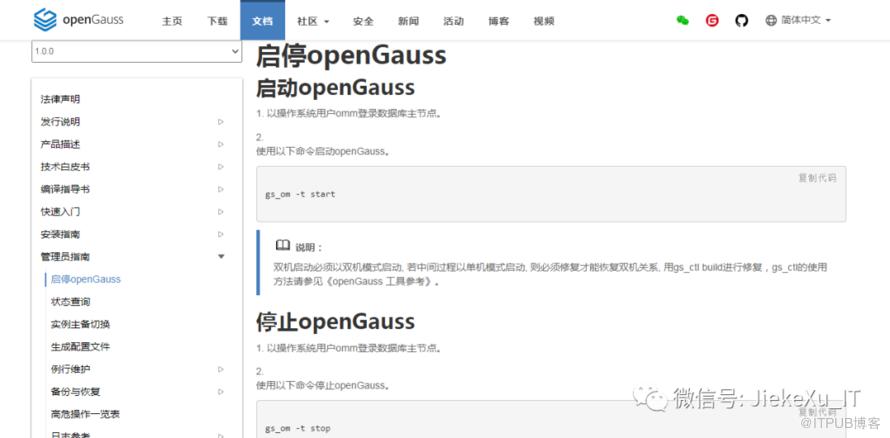 数据库启停,状态查看,主备切换,备份恢复,日志设置等一些管理员操作指南均可查看官方文档。如下地址,中文文档,查看很是方便。