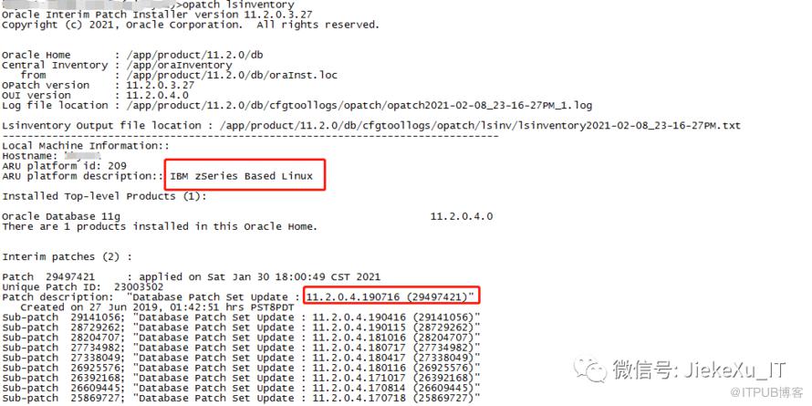 JIEKED2:/app/product/11.2.0/db/OPatch$opatch lsinventory