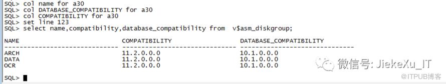 select name,compatibility,database_compatibility from v$asm_diskgroup;