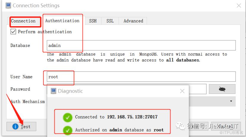 mongo --host 192.168.75.128 --port 27017 -u root -p root --authenticationDatabase admin
