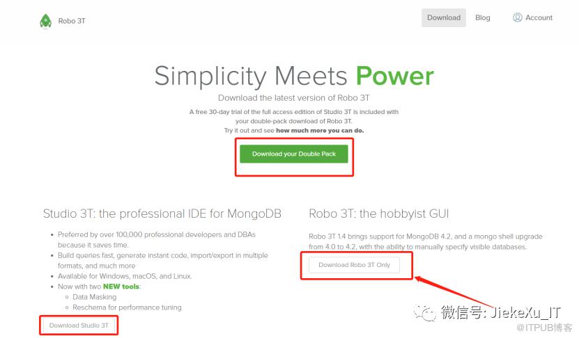 Robo Studio 3T 是 MongoDB 的专业 IDE,商业收费软件,可下载 30 天试用版本,这里我们仅下载 Robo 3T 即可。