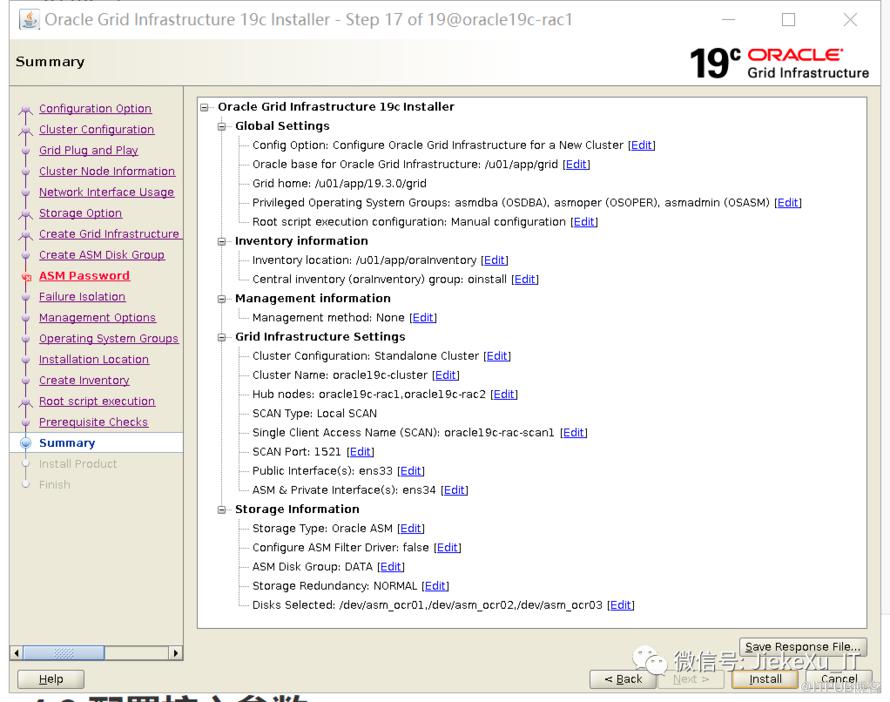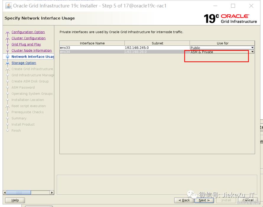 确保对应网卡和IP网段对应即可,19C心跳网段需要选ASM & Private,用于ASM实例的托管