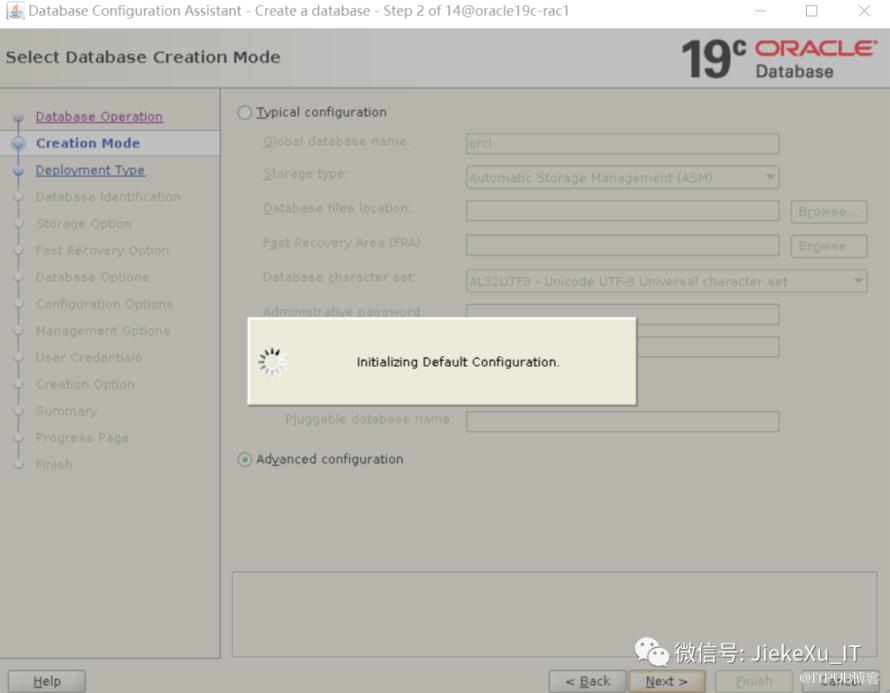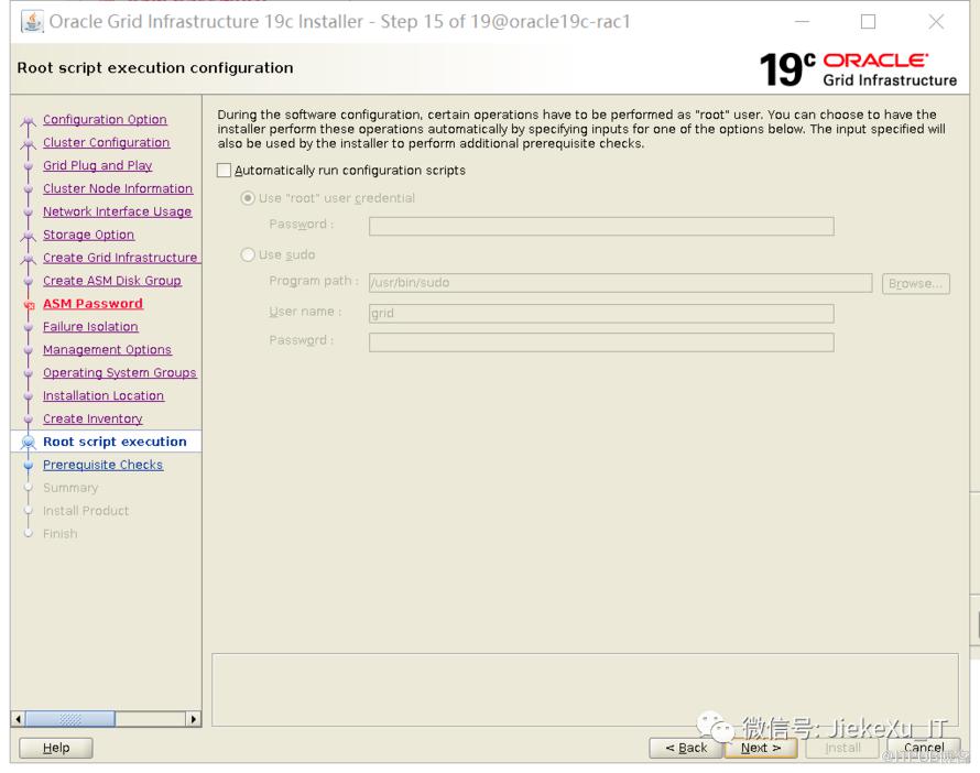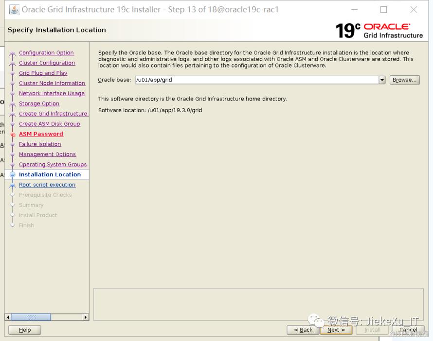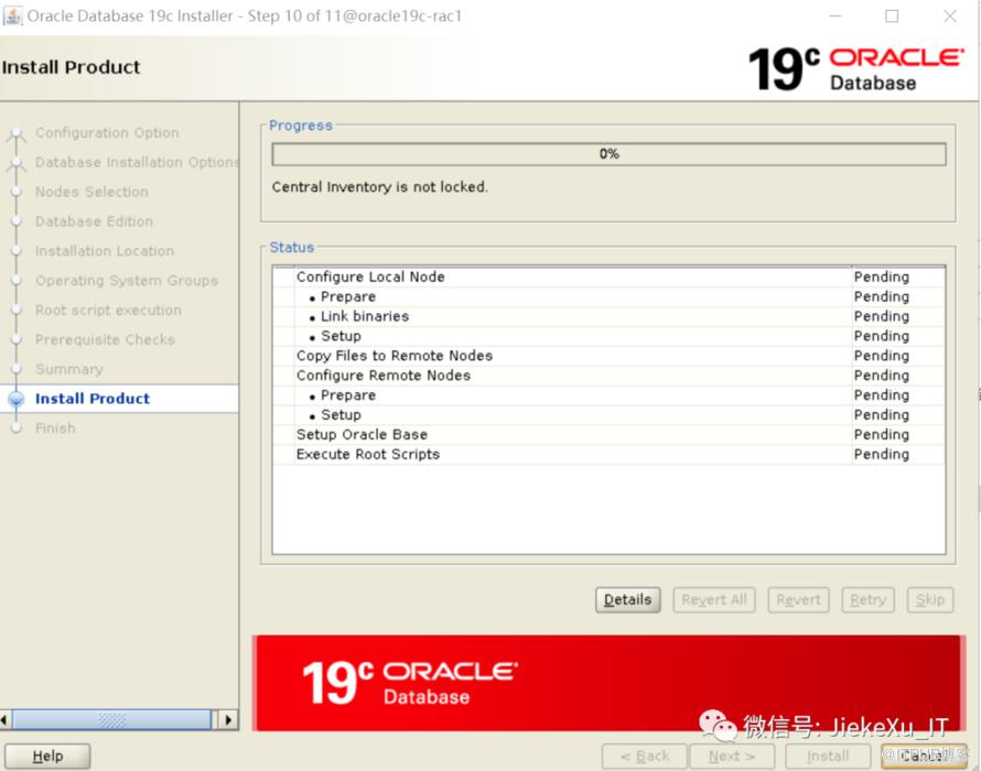 export DISPLAY=192.168.245.110:0.0 -推荐用mobaXterm方便执行安装程序开始安装,通过-applyRU参数指向补丁解压位置,提前安装grid补丁 ./gridSetup.sh -applyRU /soft/32545008./gridSetup.sh -applyRU /u01/sw/ru/32545008这里首先进行的是补丁升级,然后再启动安装界面......相关进程如下grid 9368 5973 0 21:49 pts/0 00:00:00 /bin/sh ./gridSetup.sh -applyRU /u01/sw/ru/32545008grid 9382 9368 0 21:49 pts/0 00:00:00 /u01/app/19.3.0/grid/perl/bin/perl -I/u01/app/19.3.0/grid/perl/lib -I/u01/app/19.3.0/grroot 9396 2 0 21:49 ? 00:00:00 [kworker/u2:0-ev]grid 9410 9382 0 21:49 pts/0 00:00:02 /tmp/GridSetupActions2021-07-29_09-49-06PM/tempHome/jre/bin/java -cp /tmp/GridSetupActigrid 9501 9410 0 21:49 pts/0 00:00:00 /bin/sh /u01/app/19.3.0/grid/OPatch/opatchauto apply /u01/sw/ru/32545008 -no_relink -bigrid 9508 9501 0 21:49 pts/0 00:00:00 /u01/app/19.3.0/grid/perl/bin/perl /u01/app/19.3.0/grid/OPatch/auto/database/bin/OPatchgrid 9601 9508 26 21:49 pts/0 00:02:36 /u01/app/19.3.0/grid/OPatch/jre/bin/java -d64 -Xmx3072m -cp /u01/app/19.3.0/grid/OPatch这里进行软件的RU升级,并不做relink。升级上次测试需要半个多小时,去抽个烟。结果升级了3个小时。相关的打补丁详细信息在/u01/app/19.3.0/grid/cfgtoollogs/