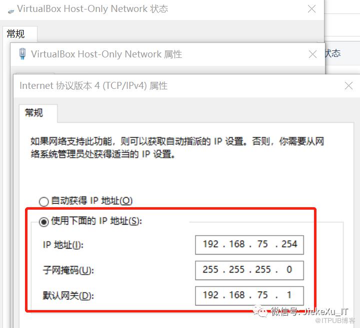 将 VBOX 虚拟机地址修改为其他 IP 地址,例如 75.254 或者其他网段也可以,可根据实际情况设置。将 Linux 端 IP 地址改回 75 11 即可。