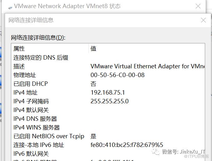 最后,经过必应各种搜索,说 IP 冲突也会出现这种情况,于是乎检查了 VMware 配置的 IP 地址,net1 和 net8 查看了也都是 32.1 和 75.1 没有地址冲突,瞬间陷入了僵局,不知该如何查看了,休息片刻,补充弹药后继续排查。