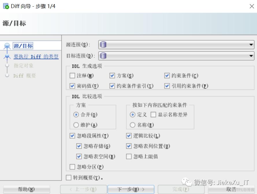 限制:对于包含要比较的数据库对象的数据库,数据库字符集必须相同。