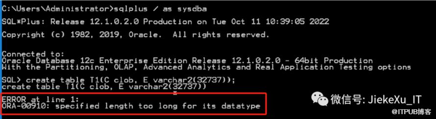 今天,我的朋友给我发了一张 12.1.0.2 版本的运行截图。结果是 SQL语句在建表时就抛出了一个数据类型太长的错误。