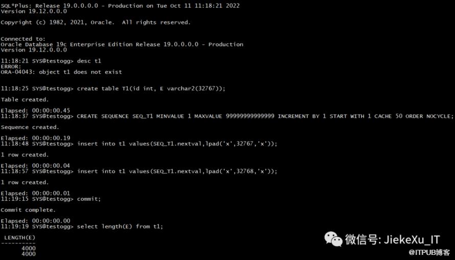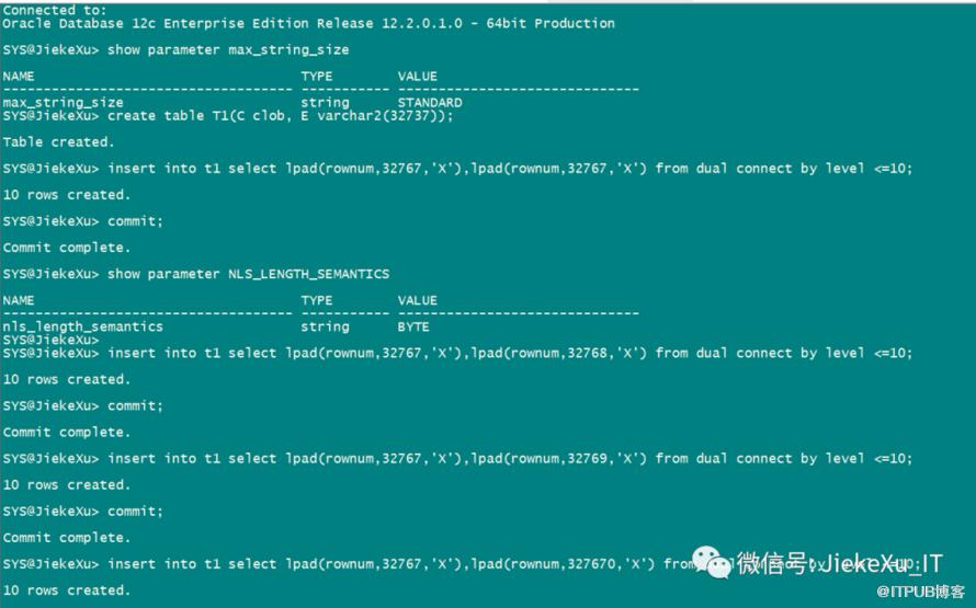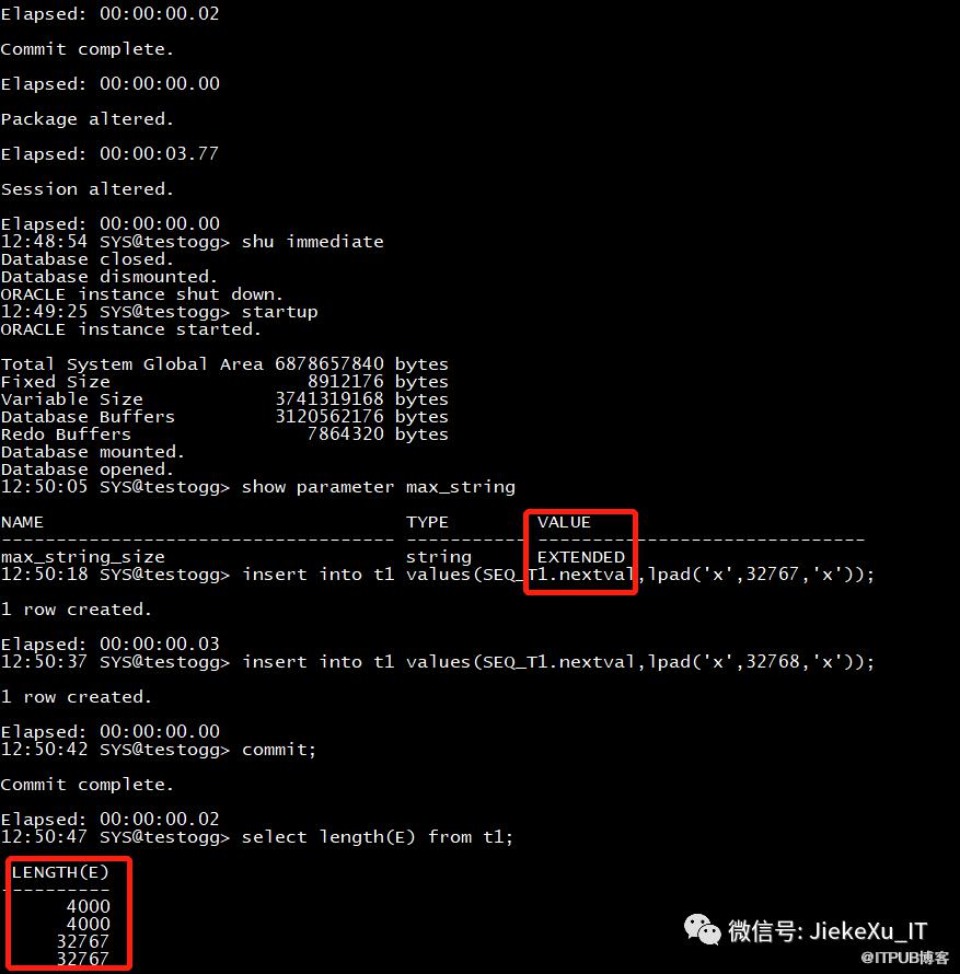And you can see that whether I use 32767 or 32768 I’m going to end up with a length of 4000.So the official document says there is no error, we have to modify the parameter MAX_STRING_SIZE = EXTENDED .