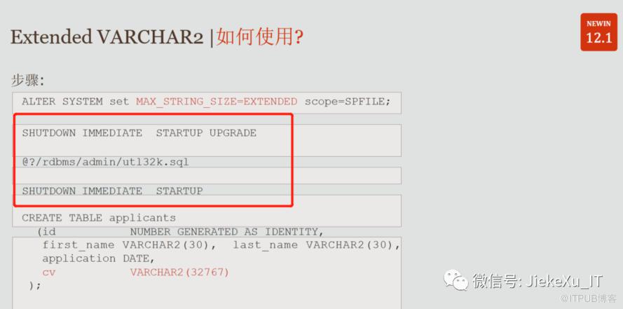 字节。可以通过设置初始化参数 MAX_STRING_SIZE 来控制您的数据库是否支持这个新的最大大小,如下所示: