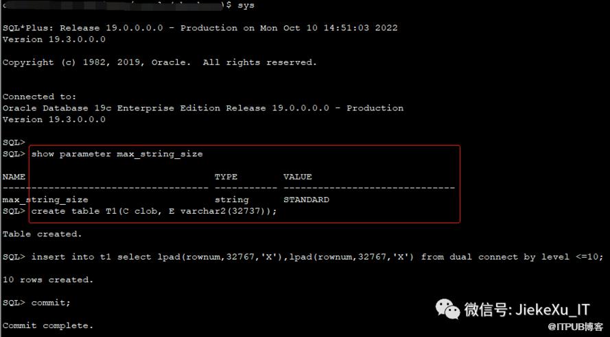 However, I found that the MAX_STRING_SIZE parameter does not need to be set to EXTENDED to create the varchar2 extension data type and insert the data successfully.The following is my test in each version of the database. Isn’t it interesting that there is a discrepancy with the official Oracle documentation?