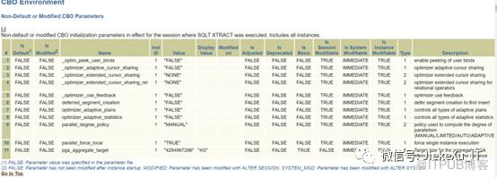 如下示例,列出了数据库中非默认的优化器参数及参数值。