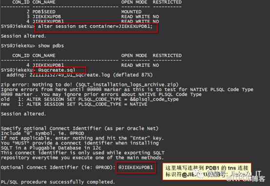 这里以单机 12.2.0.1 多租户环境为例,首先进入到容器 JIEKEXUPDB1 下,可创建 SQLT 用户 SQLTXPLAIN,也可以不用建,跑脚本时自动创建 SQLTXPLAIN 用户。