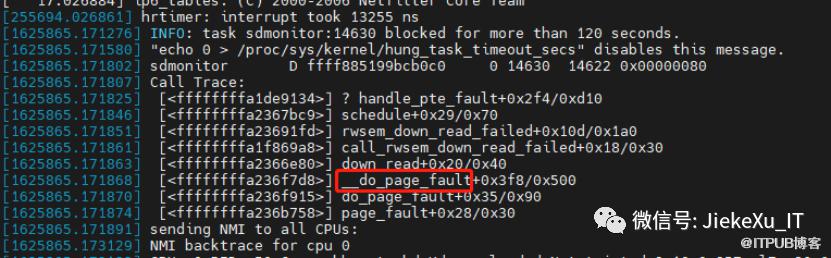 core 文件需要 gdb 命令打开分析,这里就不班门弄斧了,专业的事交给专业的人去干,通过系统工程师的分析,OS 所在主机的安全狗 watchdog 进程夯 120 秒导致主机重启。这里就要说明下为何夯 120 秒主机就会重启,因为配置了操作系统参数 kernel.hung_task_panic = 1 导致主机重启了。