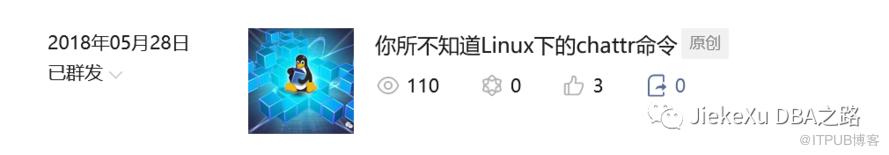 2018 年 01 月 27 日我在微信公众平台(https://mp.weixin.qq.com)注册了我的个人订阅号,当时的名字还叫“JiekeXu的IT之路”,2018 年 05 月 03 日我又将公众号名字改为“JiekeXu之路”,2018 年 05 月 28 日我通过年初申请的个人微信号写下了第一篇文章《你所不知道Linux下的chattr命令》到现在阅读量也才 110 人次,看了一下后台记录,那时候累计关注才 26 人。然后就这样慢慢悠悠的通过这个公众号来记录个人学习过程中的笔记记录,一直坚持着记录我个人工作中遇到或者学习数据库的一些知识与技能。2021 年 02 月 09 日我又将公众号的名字改为“JiekeXu DBA之路”,因为平时工作中接触数据库多一些,常年也是担任 DBA 的角色,故此更名。