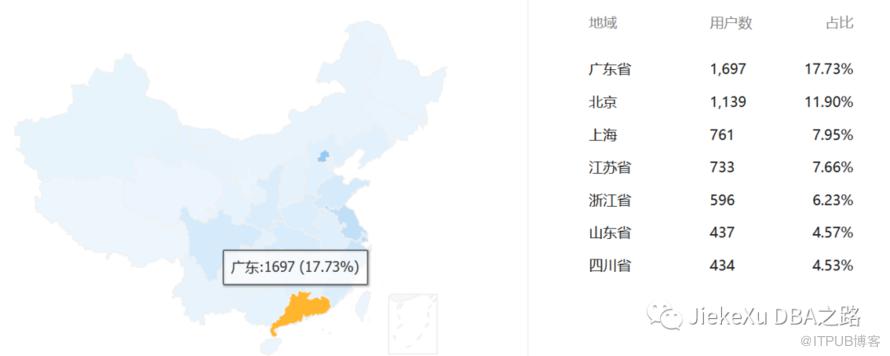 从用户所占城市来说,主要还是来自 广、北、上及两浙,这是 IT 技术比较发达的城市省份。