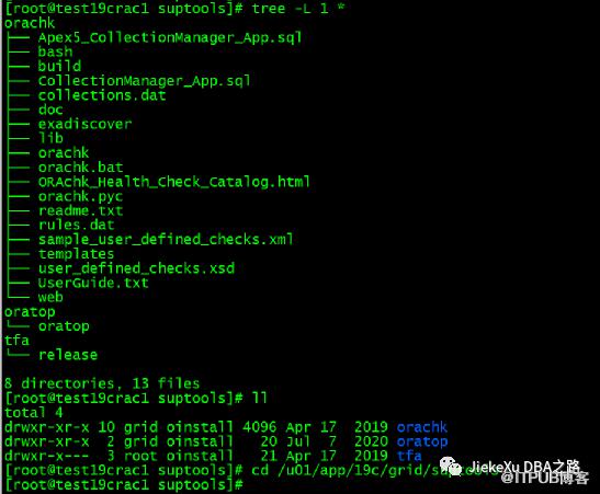 [root@test19crac1 suptools]# cd /u01/app/19c/grid/suptools[root@test19crac1 suptools]# lsorachk oratop tfa