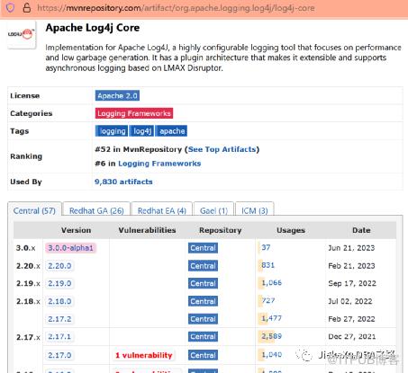 https://mvnrepository.com/artifact/org.apache.logging.log4j/log4j-core/2.17.1