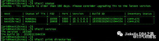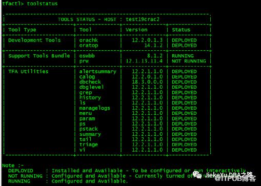 由此可以发现 tfactl 命令可以 |start|stop|print |toolstatus 等操作。